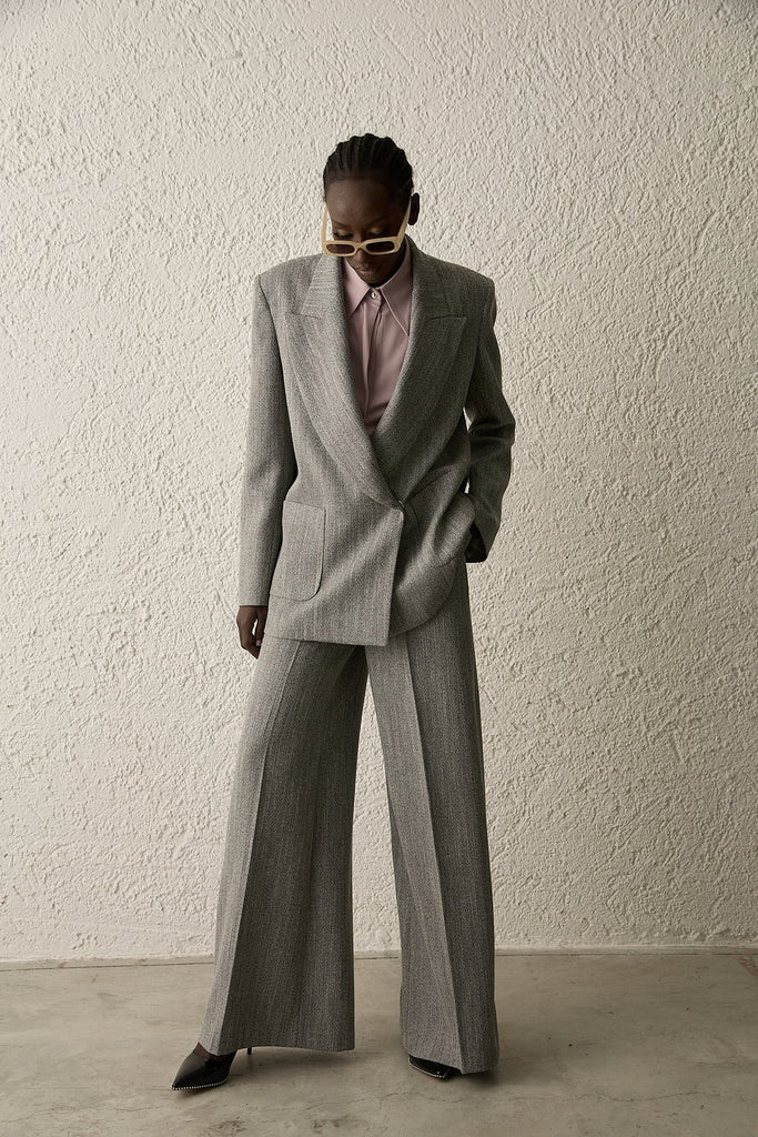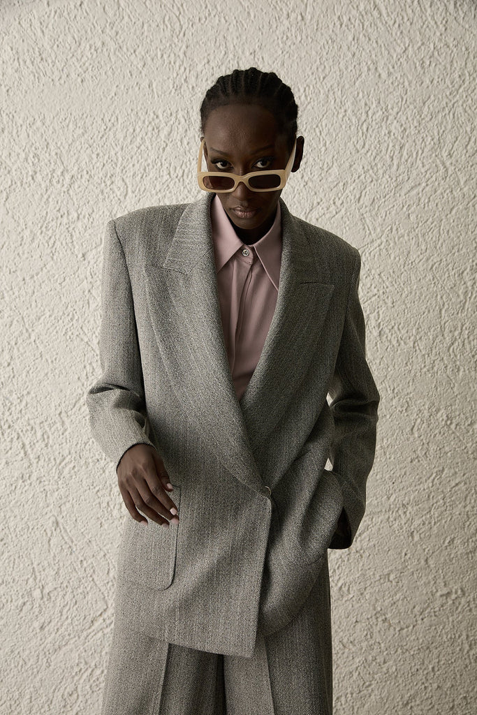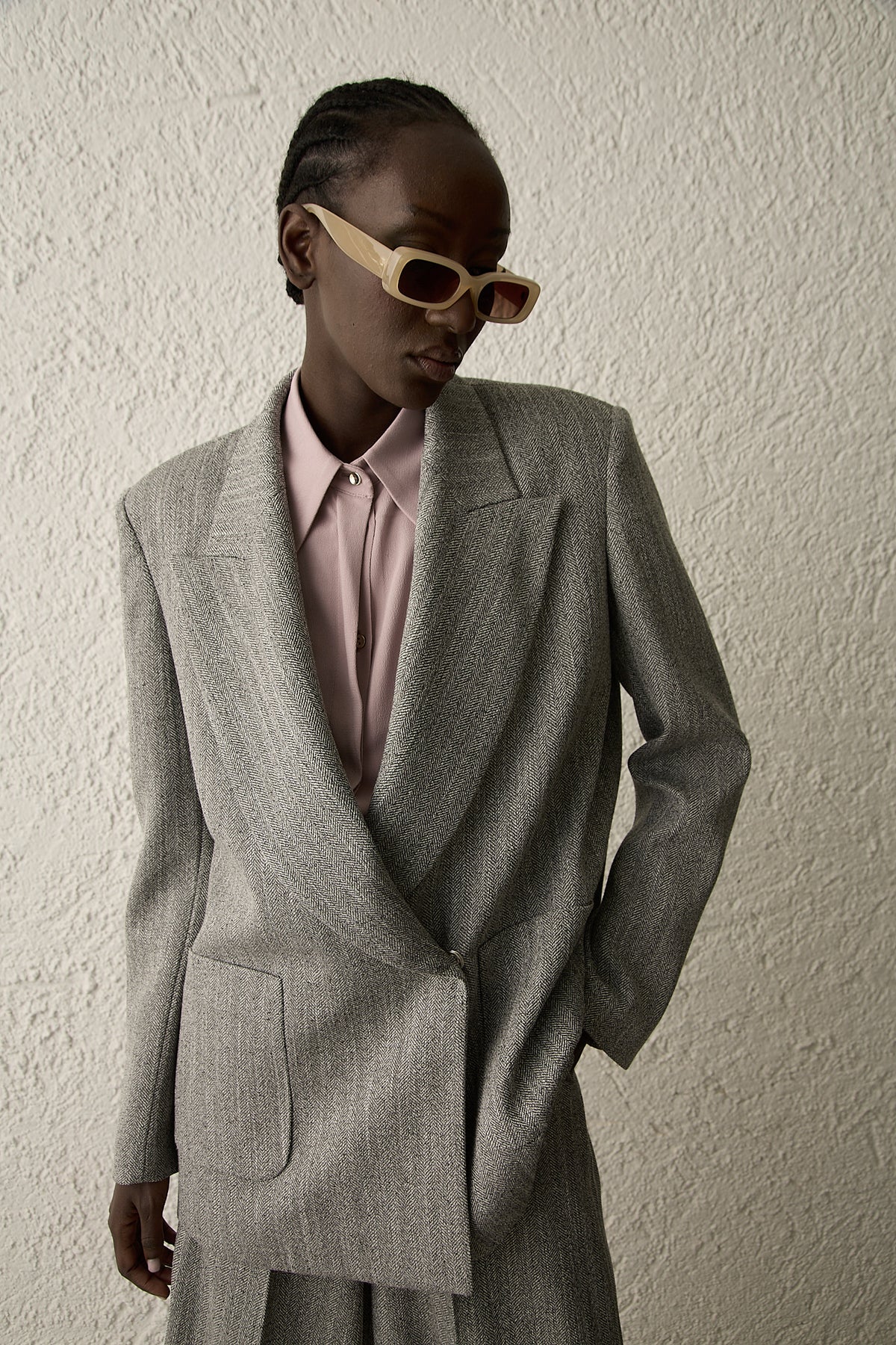 Giacca in lana a spina di pesce dalla vestibilità regular. Rever ampio e tasche frontali applicati.