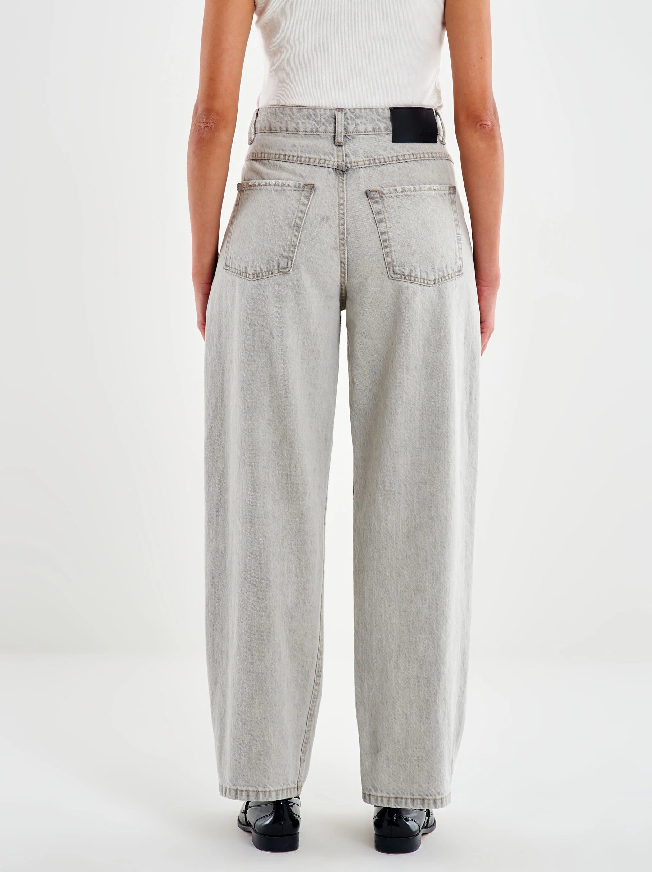 Jeans vita alta relaxed fit. Modello Phoebe. Denim grigio slavato.