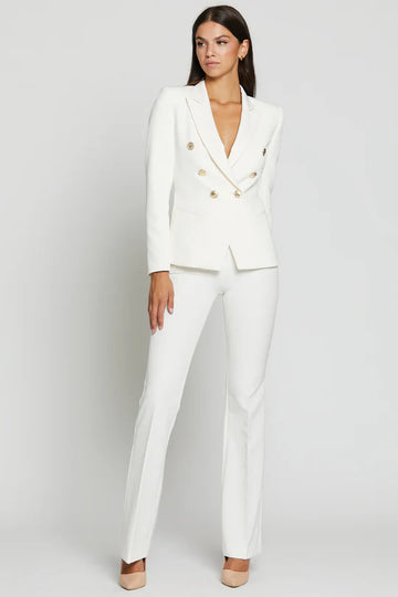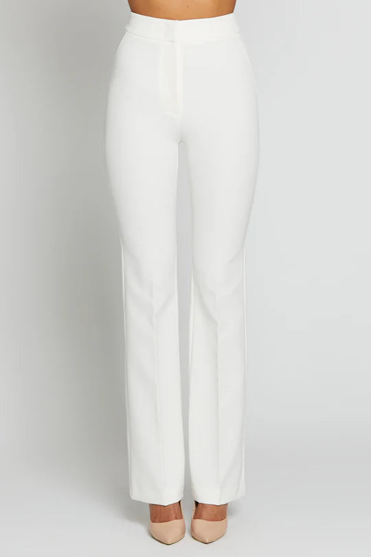 Pantaloni flare in tessuto tecnico. Chiusura invisibile con ganci e zip, vita alta e finte tasche sul bacino