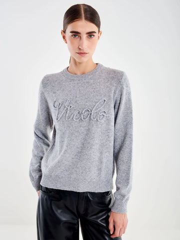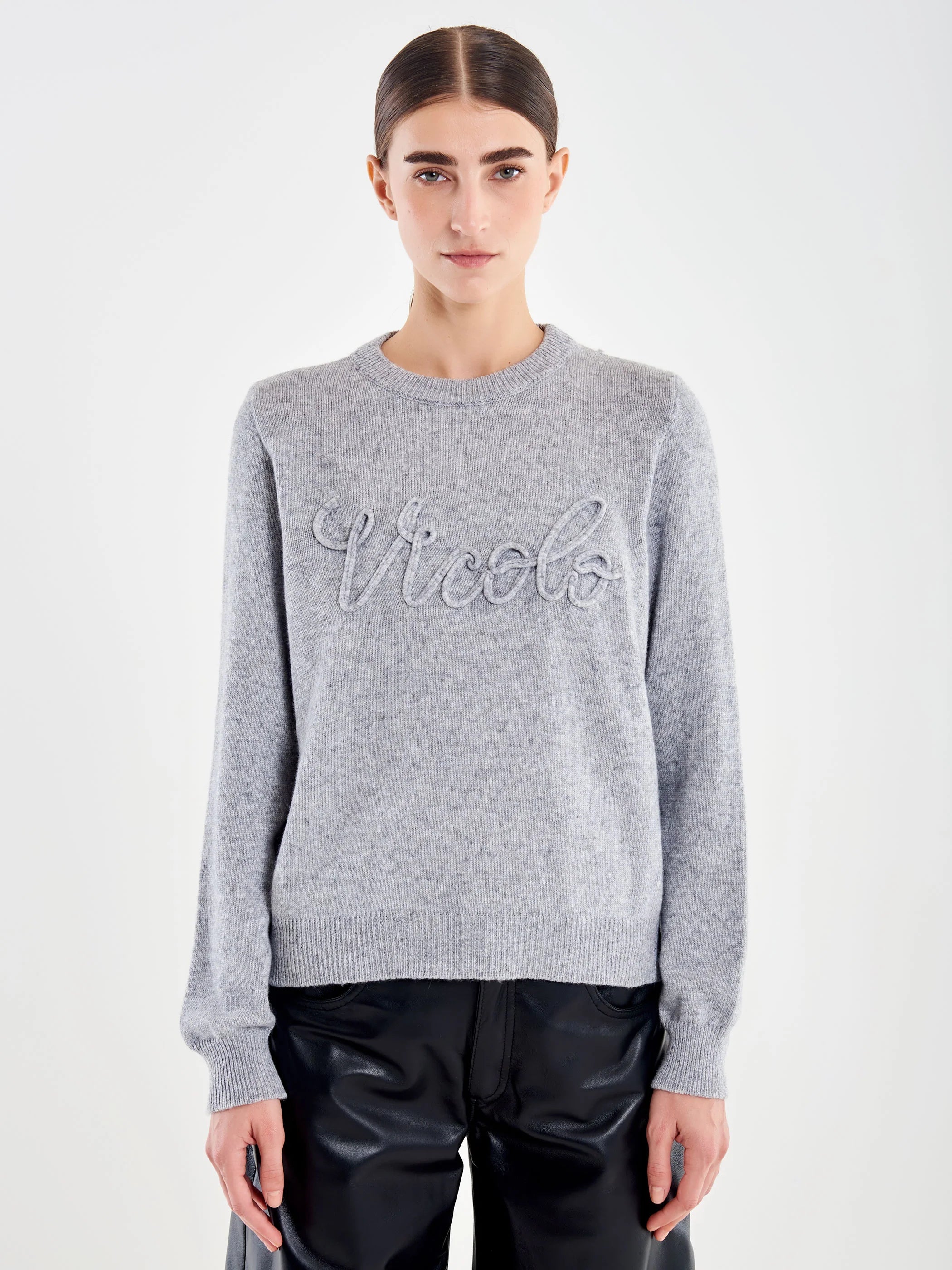 Pullover girocollo in lana,viscosa e cashmere. Dettaglio fondi in maglia a costine. Logo Vicolo ricamato ton sur ton.
