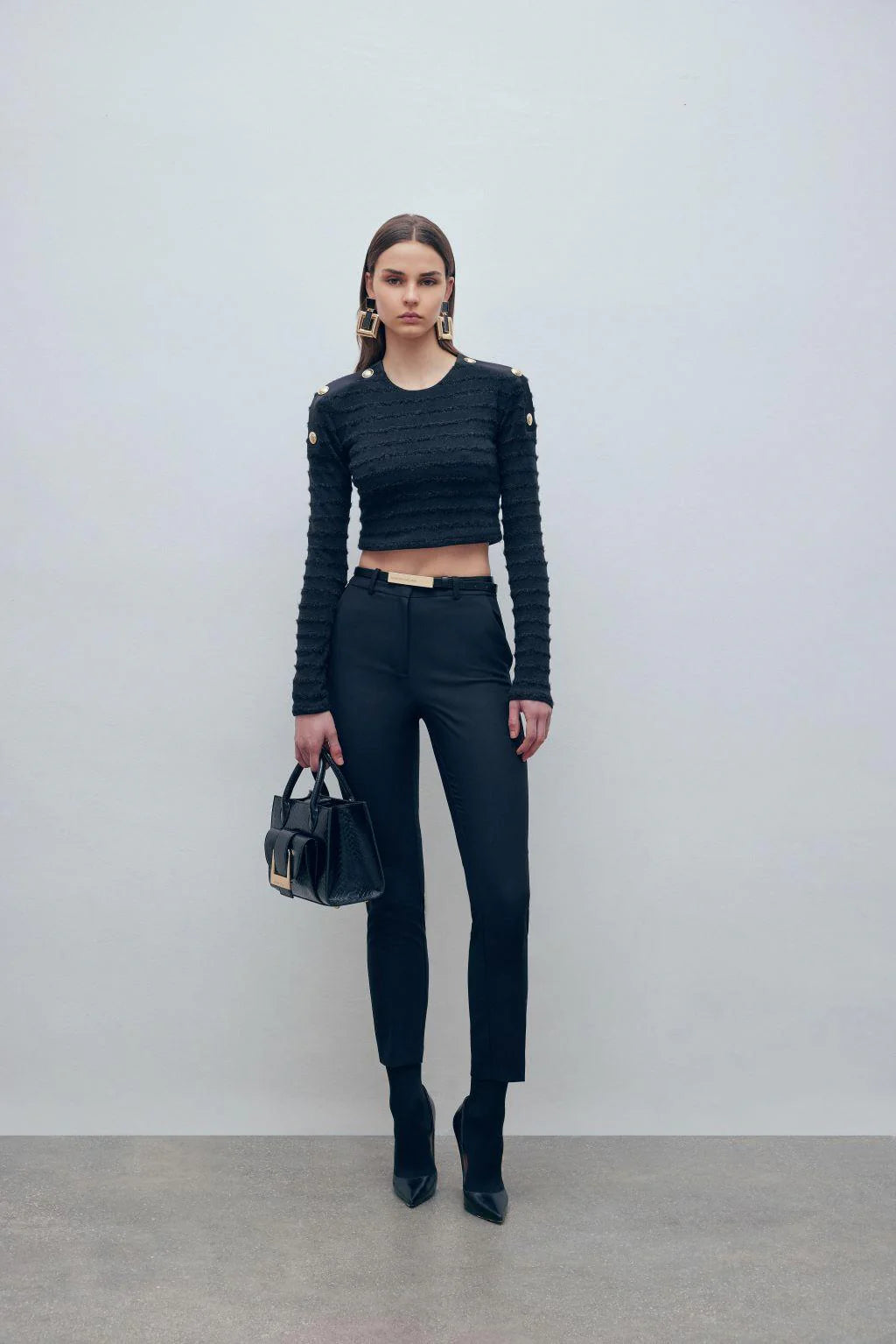 Pantaloni slim in twill tecnico. Tasche a filo, chiusura nascosta con gancetto e zip e passanti in vita. Cintura non inclusa.